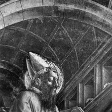 Ho trovato invece un'altra immagine che ritengo molto importante. E' il Sant'Agostino che Niccolò Pizzolo dipinse prima del 1453 (anno della morte) nella chiesa degli eremitani di Sant'Agostino in Padova, purtroppo perduto nei bombardamenti del 1944.